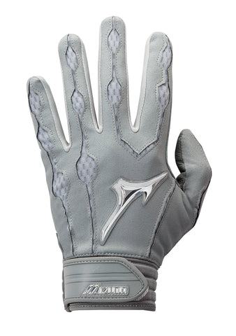 Top quality smooth white leather palm. Mizuno AirMeshTM utilized for maximum flex and breathability. QuikAdjustTM wrist tab with molded pull tab for secure fit. 3-D chrome logo applications used for rich professional look. Compression molded neoprene wristband with PNPTM (personalized number plate) for customized fit. Same design as worn by top MLB players.